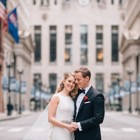 Fast forward to now and this couple is just a beautiful and happy as ever! Maciejs' family is originally from Poland; what better way to celebrate the union of two families than a site seeing tour coupled with their bridal portraits! We had the pleasure of photographing the bride and groom outside the Civic Opera House, the Chicago Board of Trade and then some architectural shots on the Kedzie Street bridge.